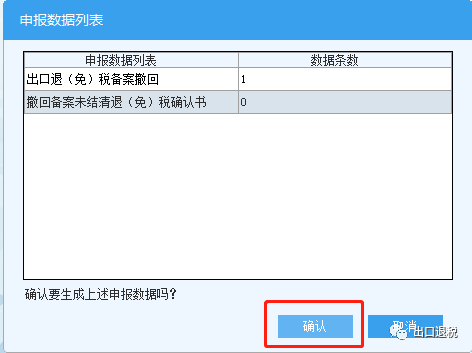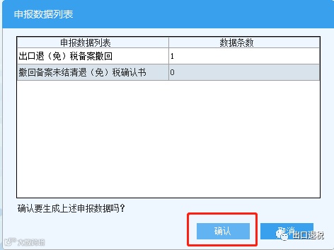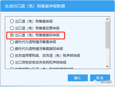 数据生成:在备案申请向导的第二步“生成退(免)税备案申报”中点击“生成出口退(免)税备案申报数据”,并注意选择“出口退(免)税备案撤回申报”选项,点击确认。
