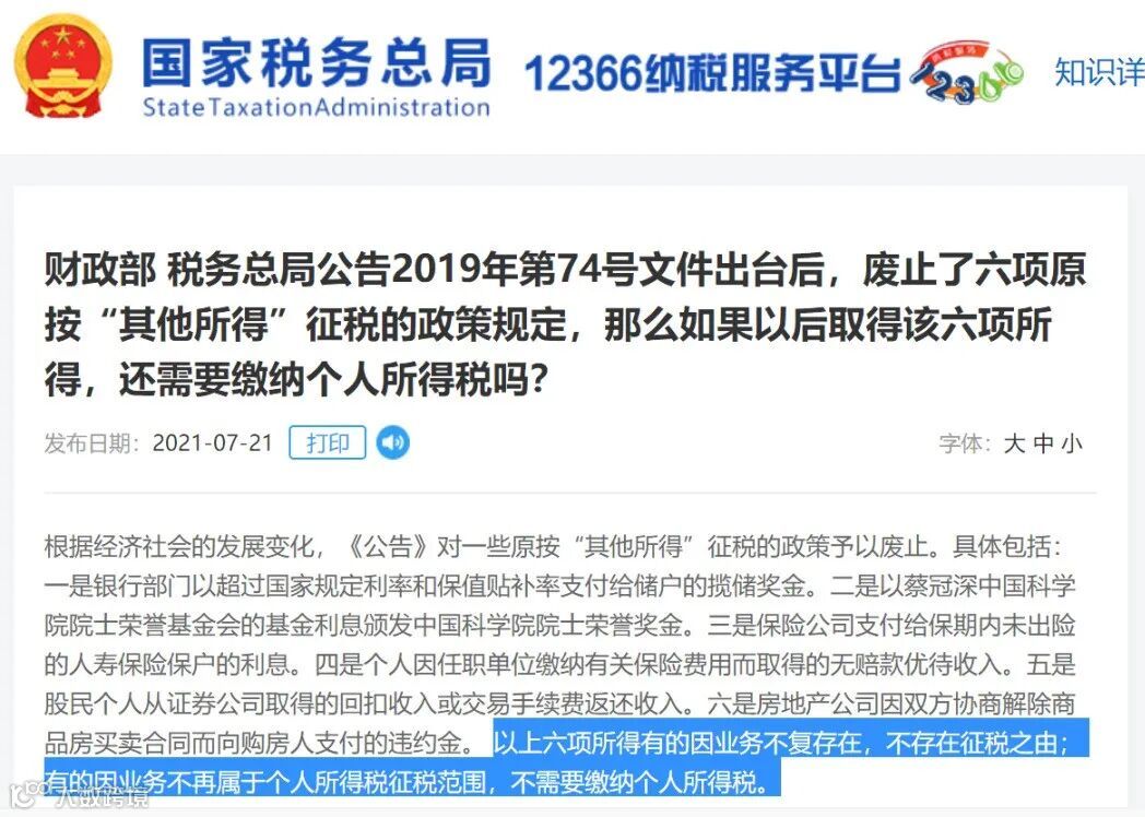 财政部 税务总局公告2019年第74号文件出台后,废止了六项原按“其他所得”征税的政策规定,那么如果以后取得该六项所得,还需要缴纳个人所得税吗?