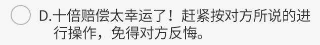 接到某购物网站电话,对方称购买的产品有质量问题,商家提供十倍赔偿,需扫码验证或提供银行卡信息,以下处理方式正确的是: