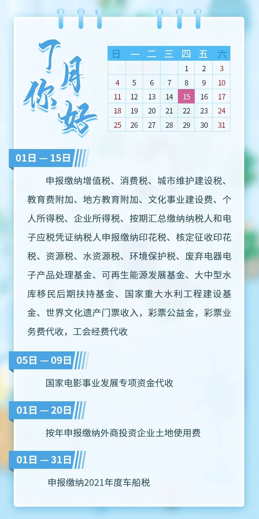 7月征期日历