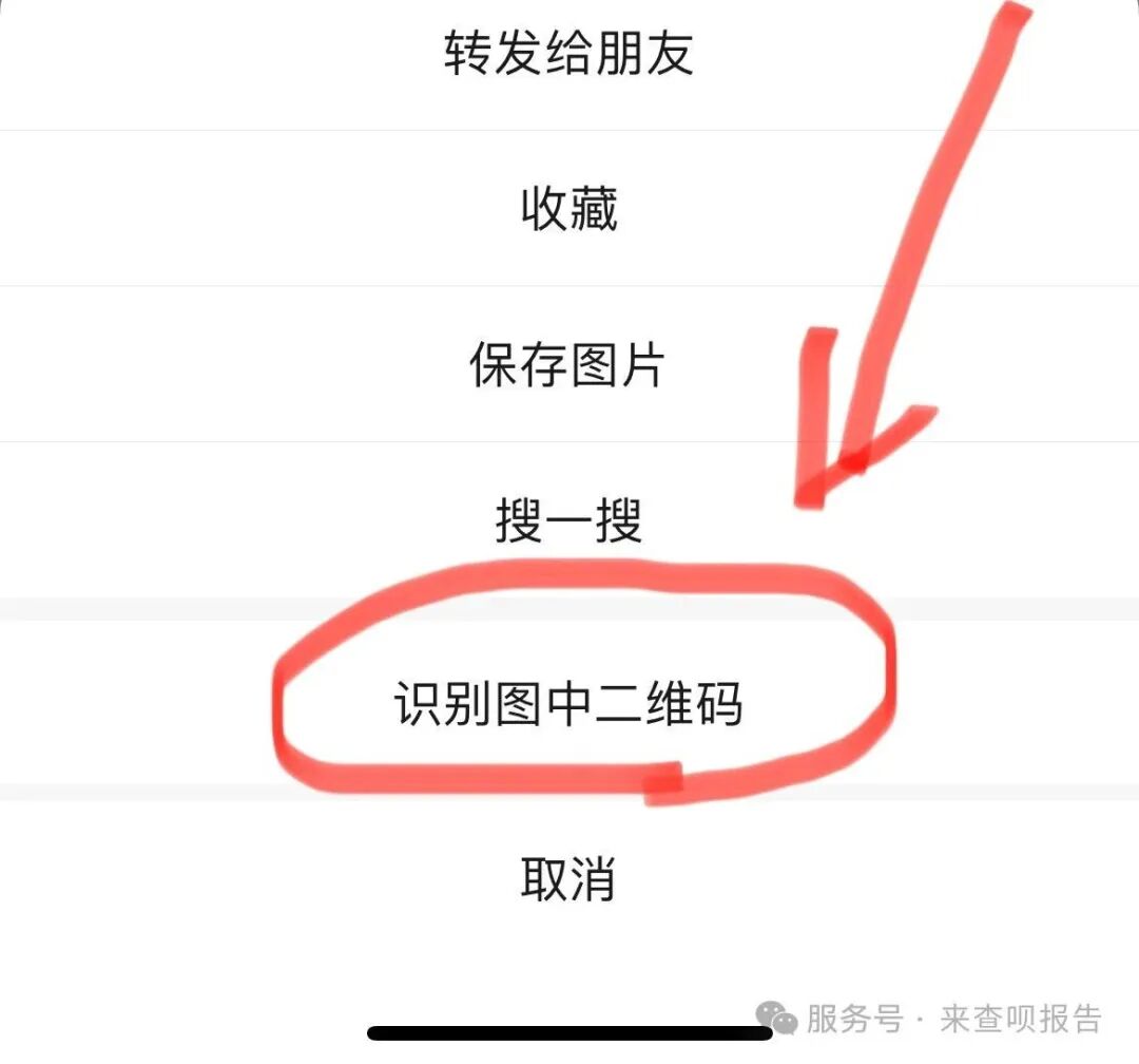 另外一种查询方法更便捷,我们直接长按住图片3秒后松手,然后点击保存图片,使用支付宝直接扫一扫会省掉很多步骤。