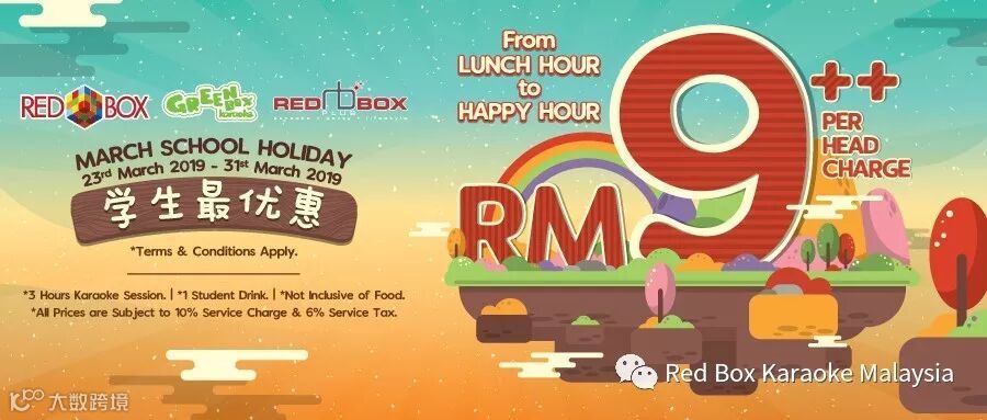 这个学校假期当然是学生最优惠啦!身为学生的你,在这个三月的学校假期到 Red Box & Green Box Karaoke 唱K 的话只需 RM9++ 就能唱足3个小时,而且还有免费饮料喝哦!