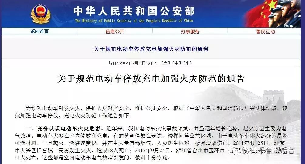 2017年的最后一天,当大家都沉浸在跨年的温馨之中,一条新法规《关于规范电动车停放充电加强火灾防范的通告》由公安部紧急下发,其中提到:要求规范电动车停放充电行为,严厉查处违规停放充电行为——
