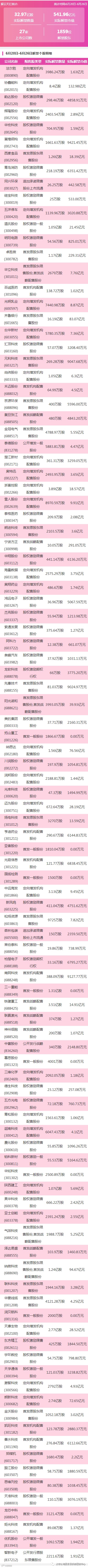 2022年6月20日至6月26日,实际解禁数量32.97亿股,实际解禁市值541.96亿股,共27家上市公司,解禁股东1859位。