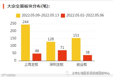2022年5月9日至2022年5月13日,大宗交易成交金额142.8亿元,交易股票数248,成交笔数620笔,平均成交折价率为96.81%,成交数量93676万股。