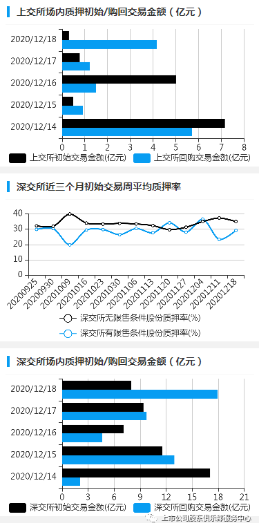 2020年12月14日至12月18日,上交所初始交易金额13.73亿元,购回交易金额13.5亿元;深交所初始交易金额50.09亿元,购回交易金额47.38亿元。