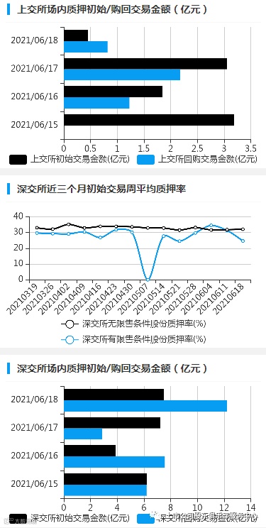 2021年6月14日至2021年6月18日,上交所初始交易金额8.53亿元,购回交易金额4.23亿元;深交所初始交易金额24.84亿元,购回交易金额28.87亿元。