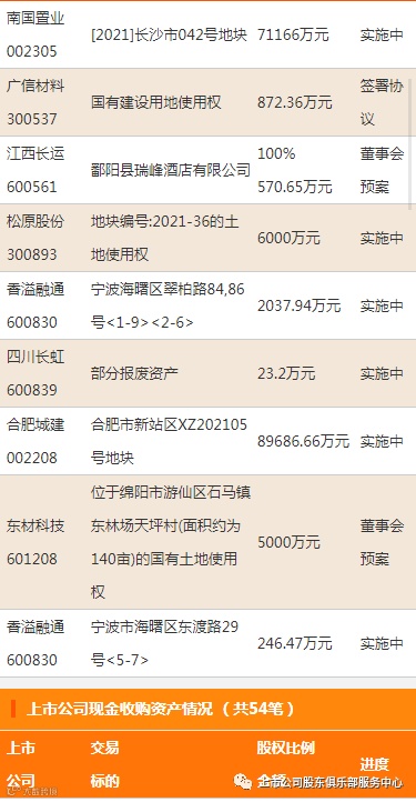 2021年5月31日 至6月6日,资产交易合计金额693.72亿元,上市公司数59家,成交笔数74笔,其中上市公司挂牌转让资产17笔,上市公司现金收购资产54笔,上市公司发行股份购买资产3笔。