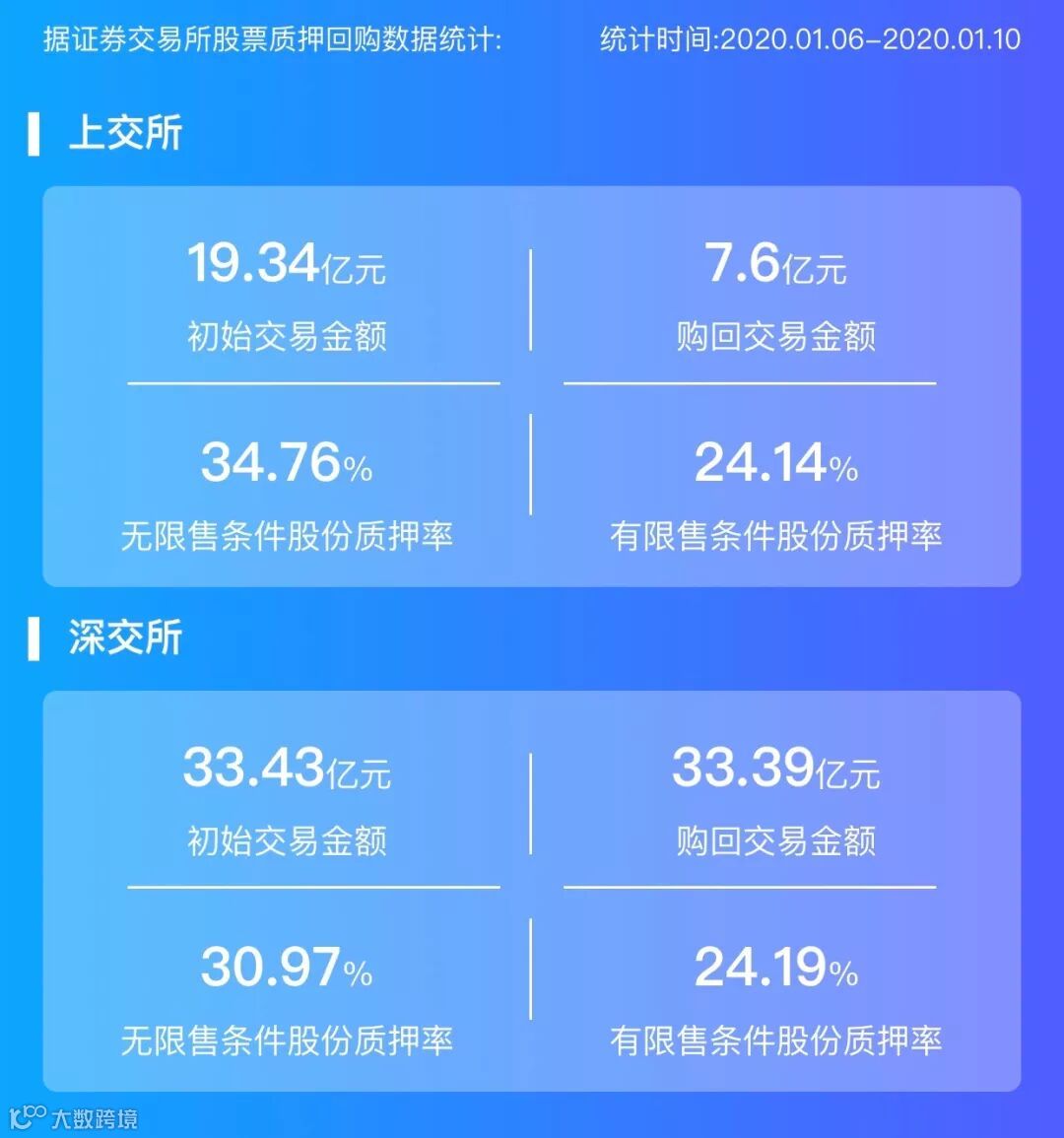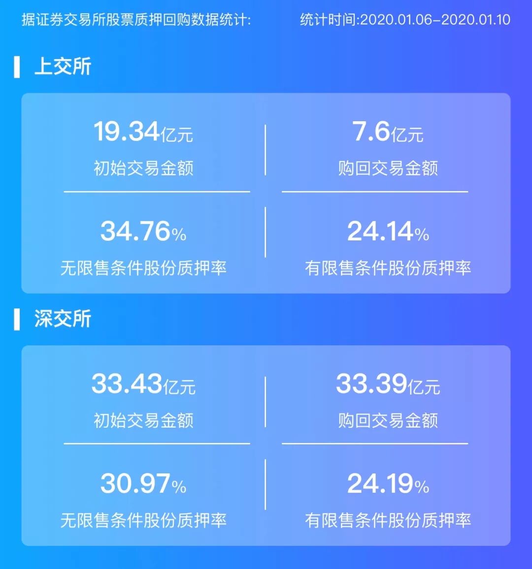 2020年1月6日至1月10日,上交所初始交易金额19.34亿元,购回交易金额7.6亿元;深交所初始交易金额33.43亿元,购回交易金额33.39亿元。