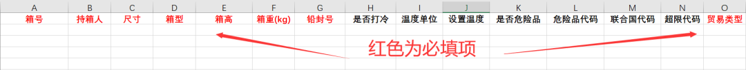 注:模板内红色字体部分是必填项,其他信息根据码头需求填写即可,必须按照该模版的格式录入信息方可成功上传。