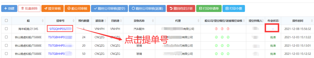 【-】:计划提交至箱控公司、船公司审核,码头尚未审核。