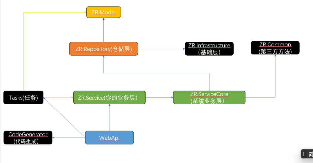 ├─ZR.ServiceCore ->[系统服务层类库]:提供系统Api接口;