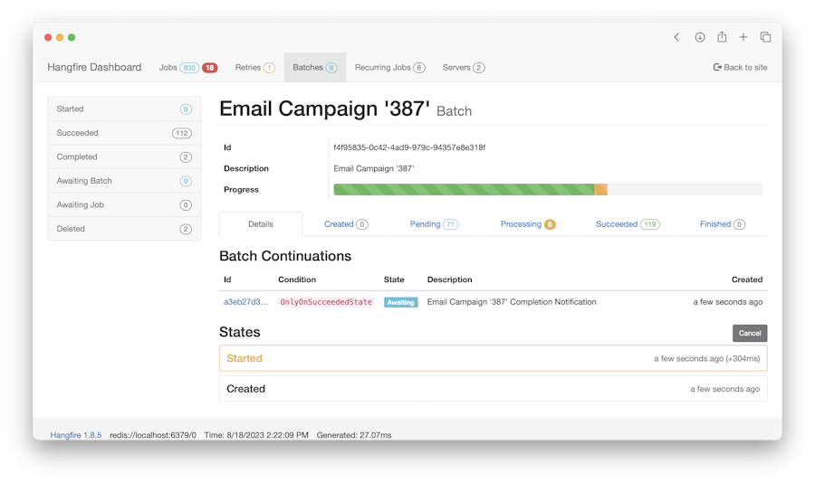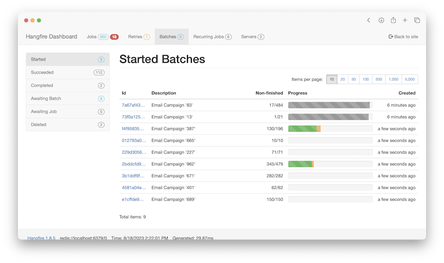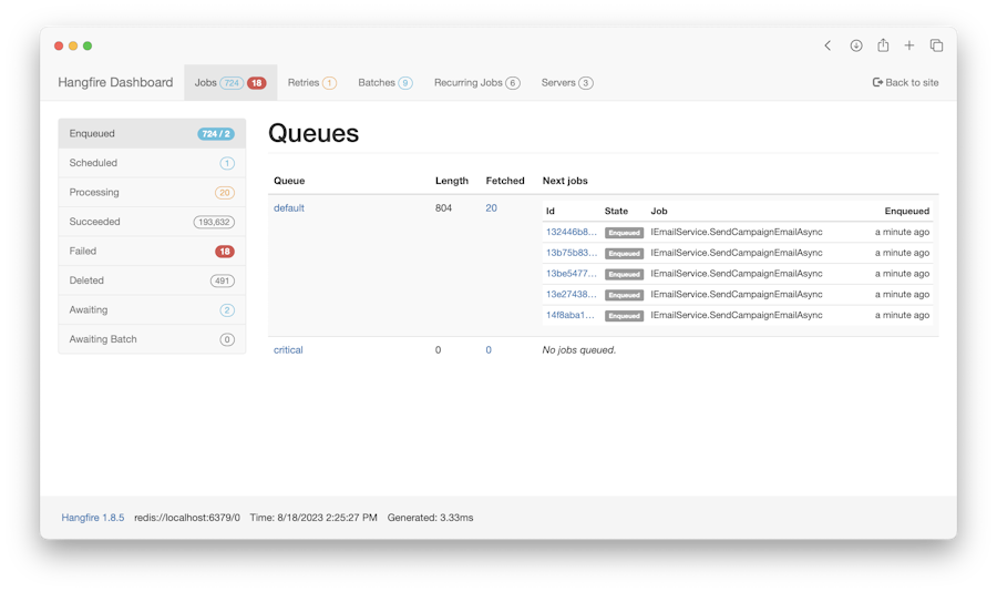 Hangfire 是一个为 .NET 平台设计的开源(GPL-3.0 license)、免费、生产就绪的后台任务处理与调度框架。它允许开发者在 ASP.NET Core、ASP.NET MVC、控制台应用、Windows 服务等各类 .NET 应用中,以简单、可靠、可监控的方式执行后台任务(Background Jobs),无需依赖 Windows 任务计划程序或复杂的消息队列基础设施。