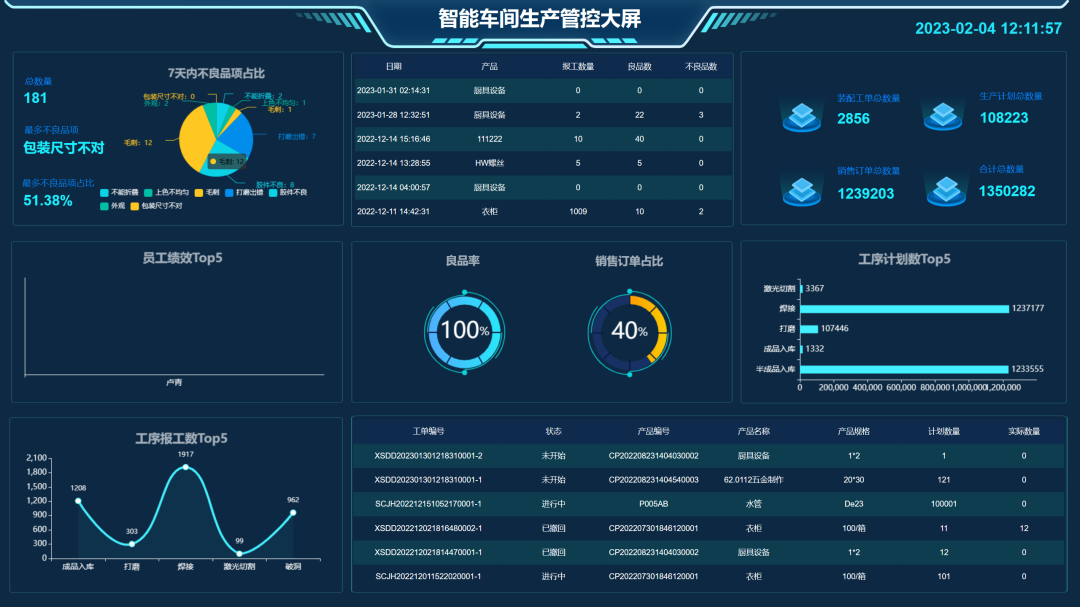 大屏设计:支持大屏显示,便于在生产现场实时监控生产进度和关键指标。