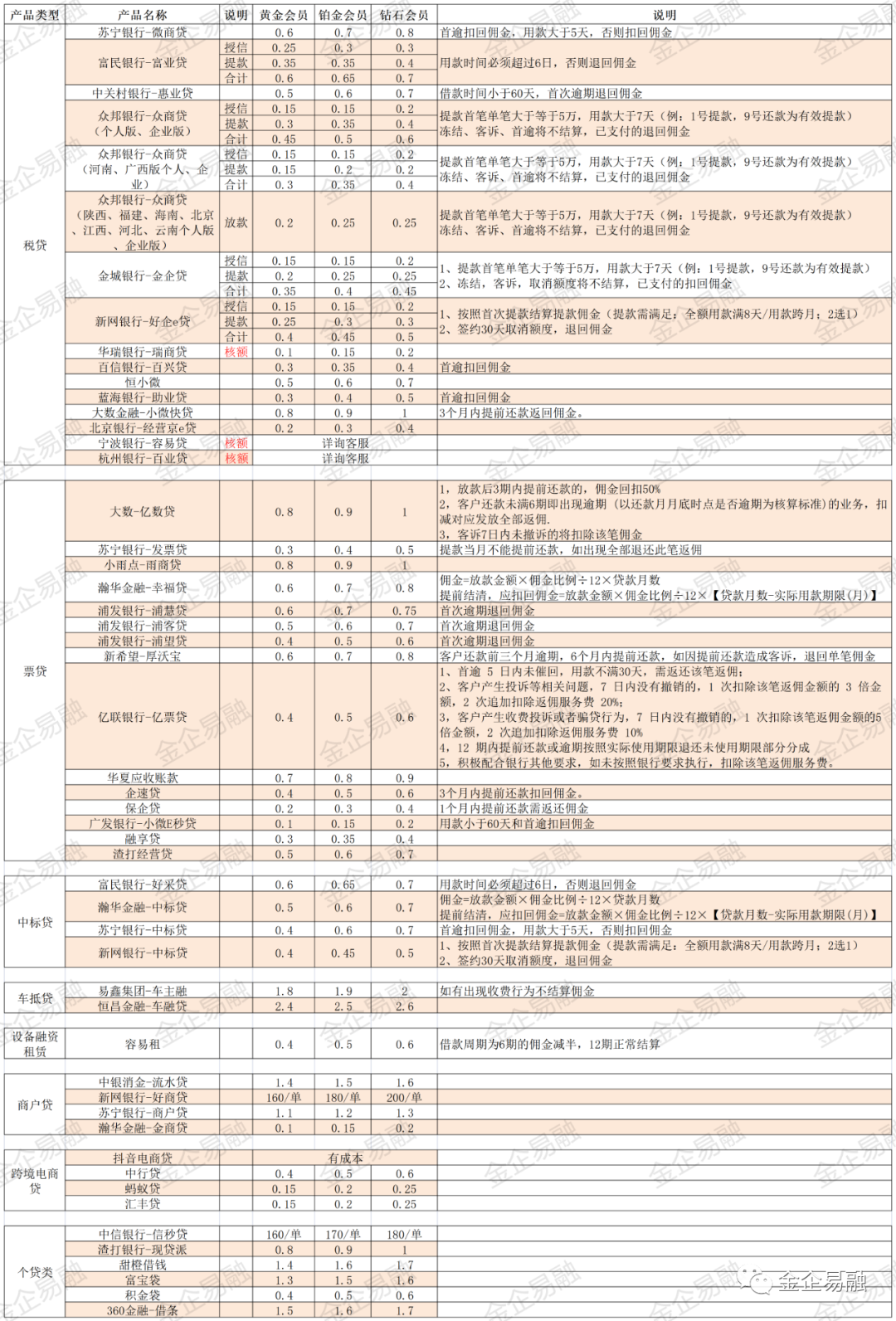 为了感谢大家的支持与信赖,金企易融在月初对平台佣金政策进行了大幅度的提升,以下是产品政策表!希望各位伙伴们再接再励,共创佳绩!也欢迎新的伙伴加入,咨询合作,共同发展!