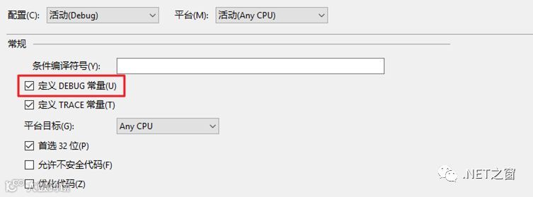 在Visual Studio中创建的项目默认包括两个生成配置,即Debug与Release。其中对于Debug配置,默认定义了DEBUG条件编译符号。