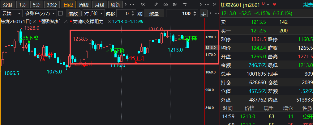 今天行情比较大,焦煤焦炭在多头强攻了几天,攻不上去多头就撤了,多晶硅下午跳水大跌,金银重新大涨,玻璃和生猪都在往低位挑战。这些热门品种主力资金动态非常重要,今天就来说说做这些品种需要注意什么!