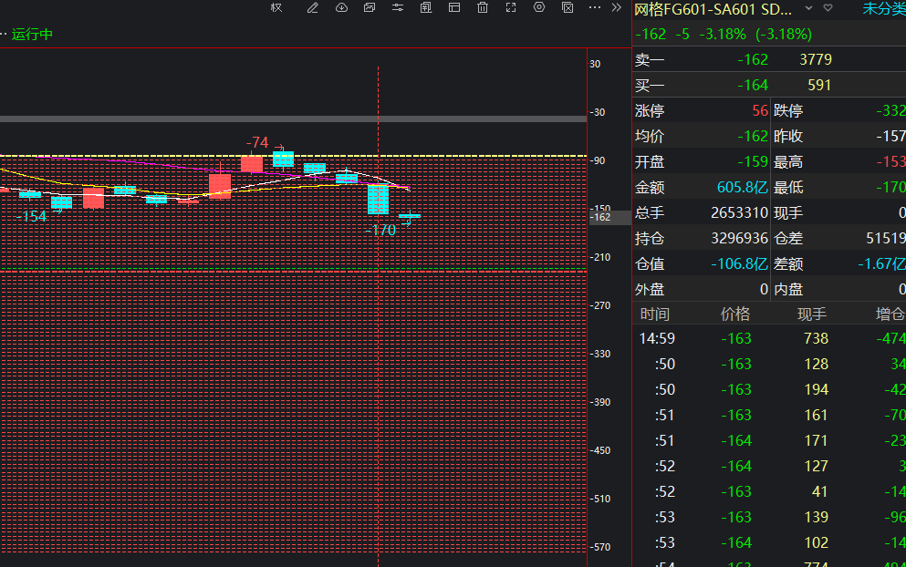 看分时图,多晶硅是增仓下跌,看到这种情况,我的理论上是觉得可以赌一赌明天持续下跌。
