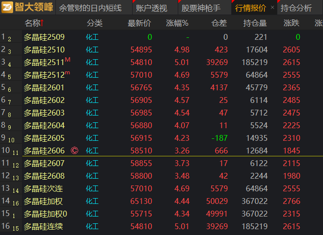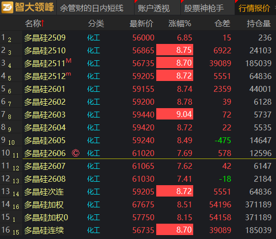 到下午两点多,多晶硅主力冲击涨停,远期已经突破6.1万大关。多头赢麻了。