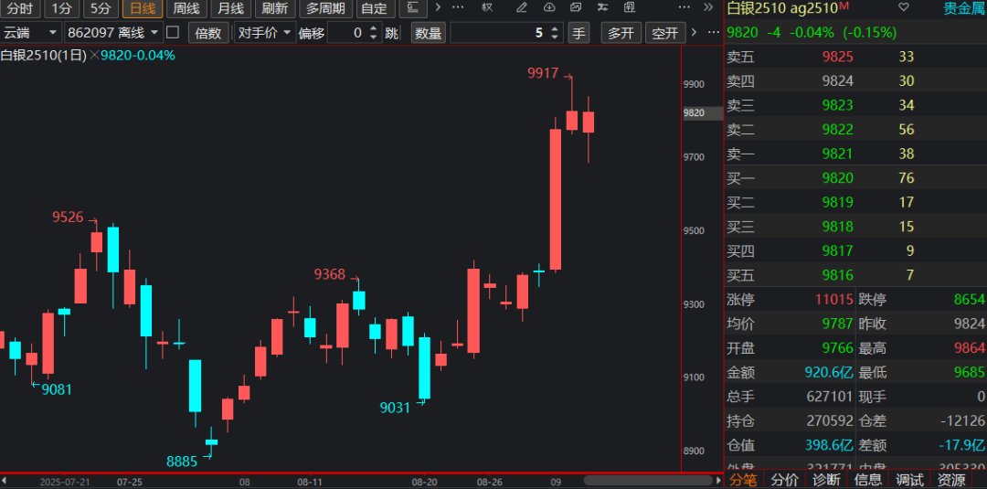 昨天我写了白银,也只是在很高位置给了个可以做宽网格的想法,不敢马上看空。