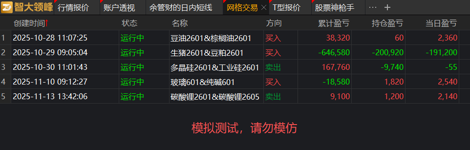 价差网格套利测试与跟踪(11月18日)