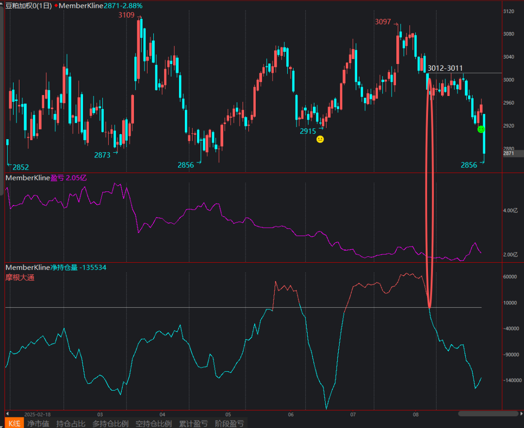 需求端来看,短期养猪行业较为稳定,但是前段时间农业部也拉这巨头开会”反内卷“,理论上说,如果繁殖母猪真的减少,未来豆粕需求是下降的。基本面需求端和供应端在情绪上产生了空头共振。