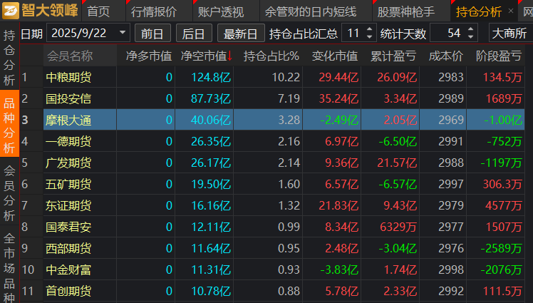 值得重点看到席位有摩根大通,可以看到,它是在8月底突然多翻空豆粕,一路加仓,目前持有进攻13.5万手。