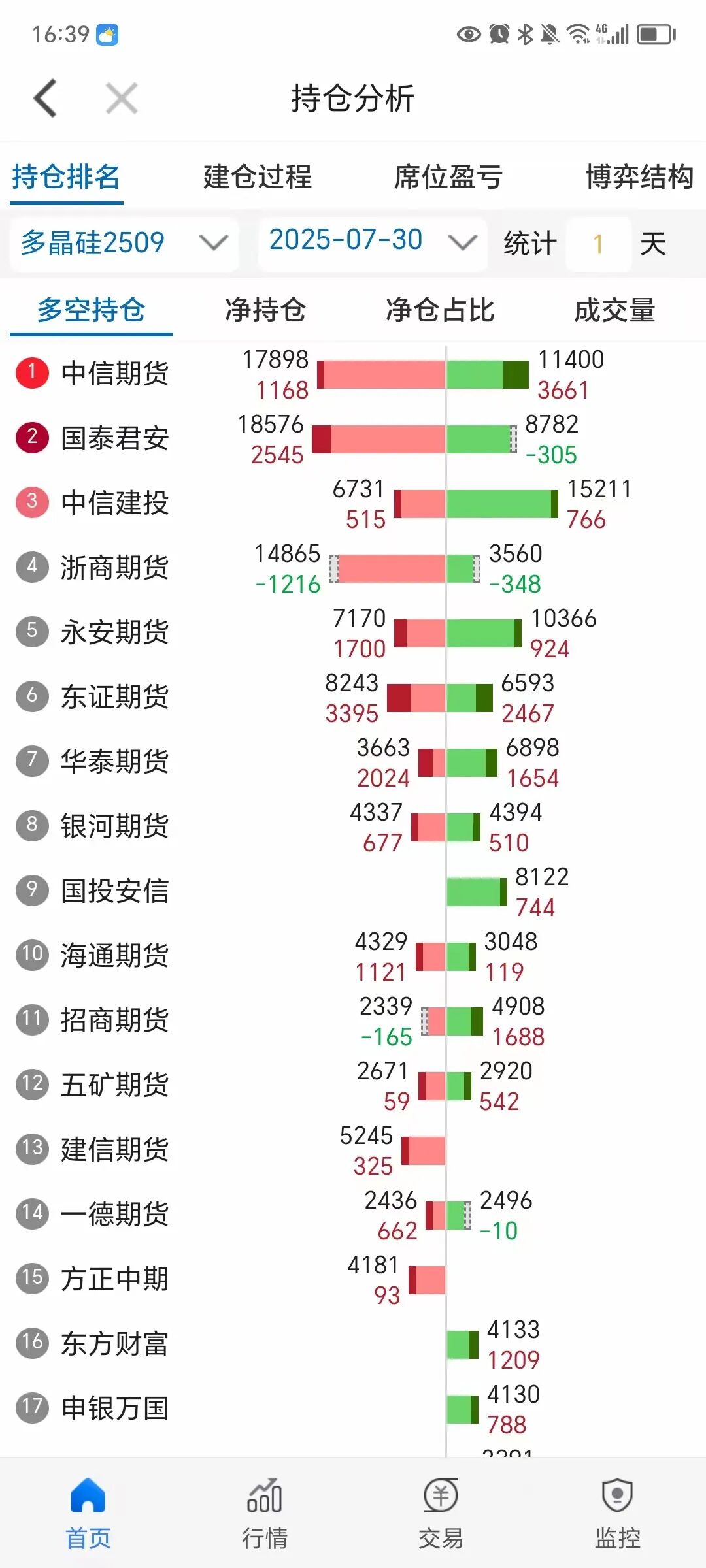 总结一下,多晶硅目前完全还是情绪主导,行业收储有很大不确定性,现货价格上不去,现在完全属于浙商期货上的资金埋头拉,什么时候它撤离了,行情就结束了。另外,这个江浙大佬多单已经浮盈超10亿。这次咱们是亲自见证顶级资金操盘过程了,过瘾呀过瘾呀!