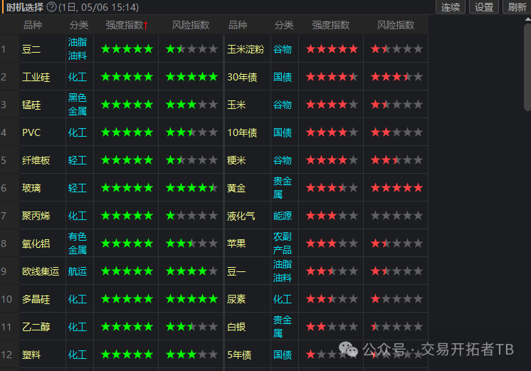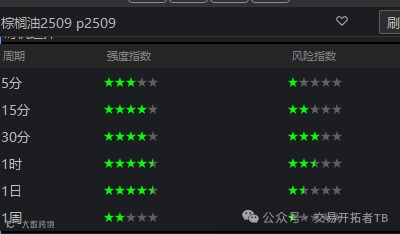 值得注意的是,棕榈油趋势强度指标日线已经有了趋势信号,目前空头趋势4.5性,风险指数1.5星。做趋势的小伙伴要积极关注这个品种。这个品种趋势一旦确认,会有极大的空间,千点级别的。