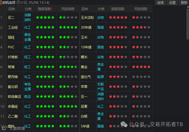 好了,其它的品种以后再说,做趋势可以重点关注智大领峰的趋势强度指标。如下图,看星星多少确定趋势,一目了然,特别适合非职业交易的朋友。