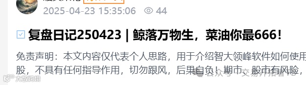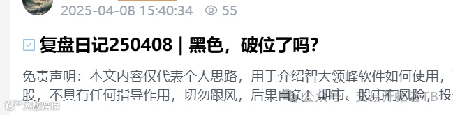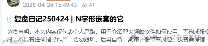 免责声明:本文内容仅代表个人思路,用于介绍智大领峰软件如何使用,不构成投资建议,文中所提期货品种与个股,不具有任何指导作用,切勿跟风,后果自负!期市、股市有风险,投资需谨慎