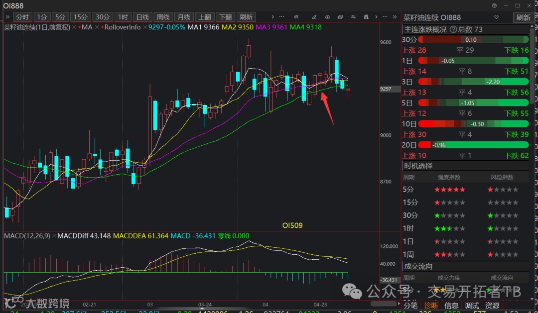 菜油, 入池后, 涨了一大根, 但可惜没有形成趋势, 被吃回来了, 那就记为不OK+1吧,虽然短线是对的, 但咱最好希望他能多走几天,对自己严格写,OK(3):不OK(1)