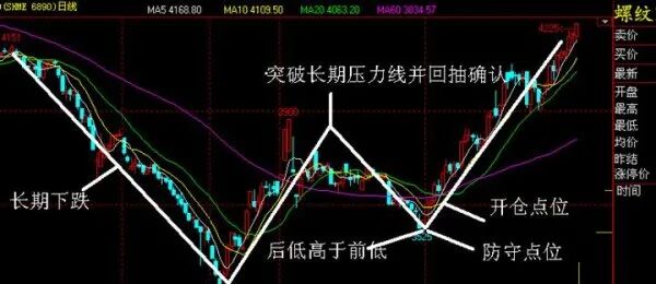 2. N形底的前期应该有一次明显的下跌趋势,且越大越好,这样的趋势一旦扭转那么后市上涨的潜在空间也就越大。