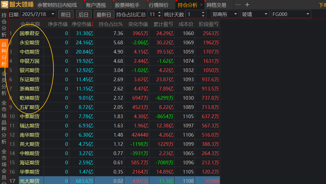 估计玻璃今天会有3-4个主力席位都在减仓,甚至会有2-3个今天一看已经变成了净多头。