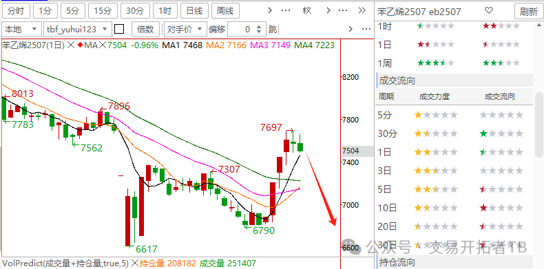 8、苯乙烯:近月讲故事说逼空,但是昨天原油大跌,逼空就是找死,当然,这个最好做远月,不要做临近交割的品种。怎么涨上去的,后面还是看跌回去。最终还是要跟着原油跑的。