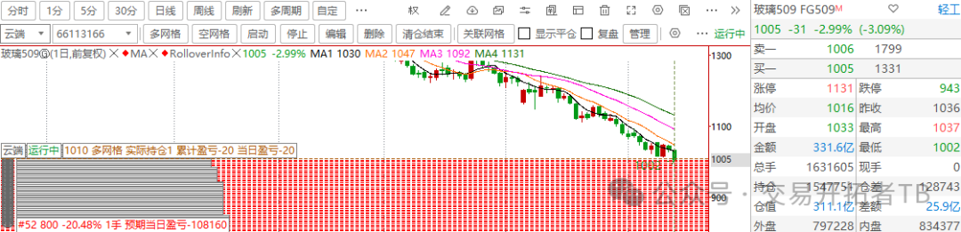 6、玻璃,纯碱:前天的大涨,让很多人进场抄底,毕竟跌了这么久,都感觉能反弹几天,但现实就是一天的行情,玻璃今天创新低1002,晚上可能就要击破很多人的心理防线了,之前很多在1300、1200抄底的人止损位都是放在1000的位置,这一波下来很多人要割肉。