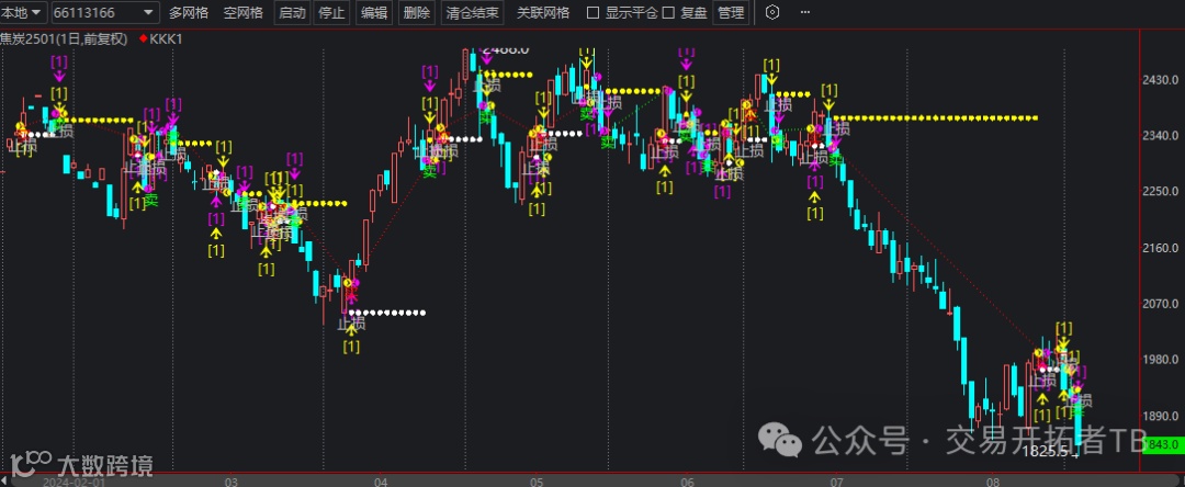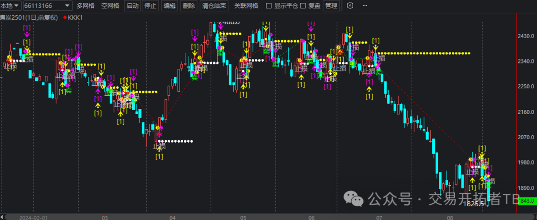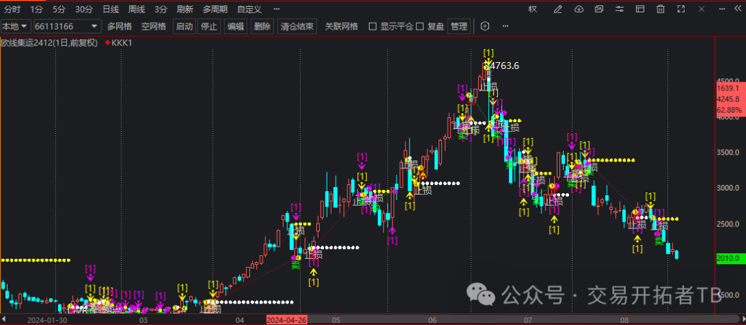 举例,在菜籽粕主连上找到相关的出场点。这些进场点有的是被止损了,有的是抓到了很大一波行情。本周的大涨是可以通过这个方法做到的。