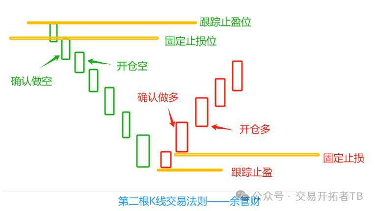 3、固定止损,第二根K线的开盘价为止损价。