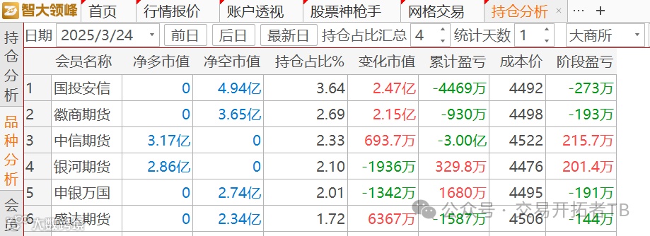 2家多头挑紧跟着的4家空头,1个交易日过去了, 截止3月24日收盘后的持仓数据变成了