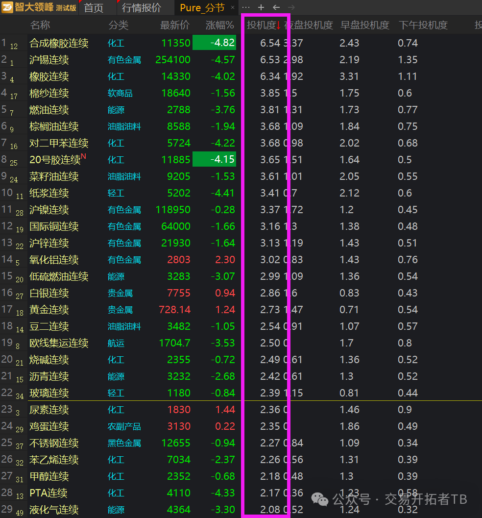 从投机度这个维度也可以看出来, 当前是日内交易的天堂,交投非常活跃,品种选对的话, 日内交易收益会非常可观。但对于偏隔夜趋势,且没仓位的交易者来说,就有点儿难受了, 参与也不是,不参与也不是。