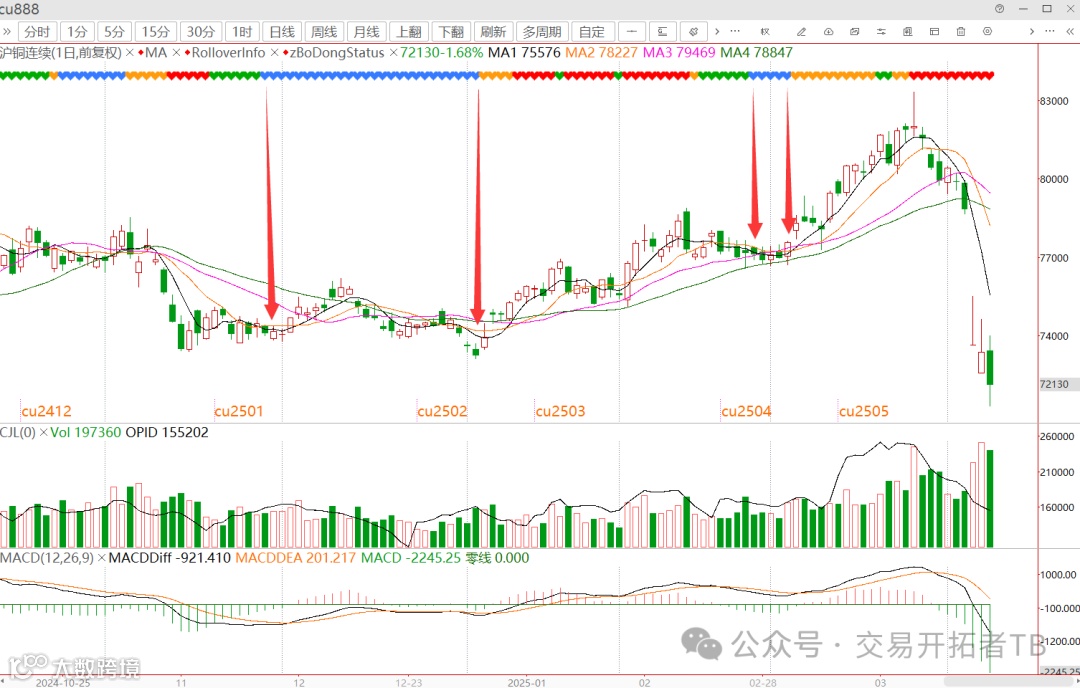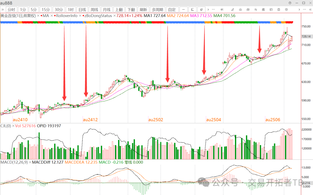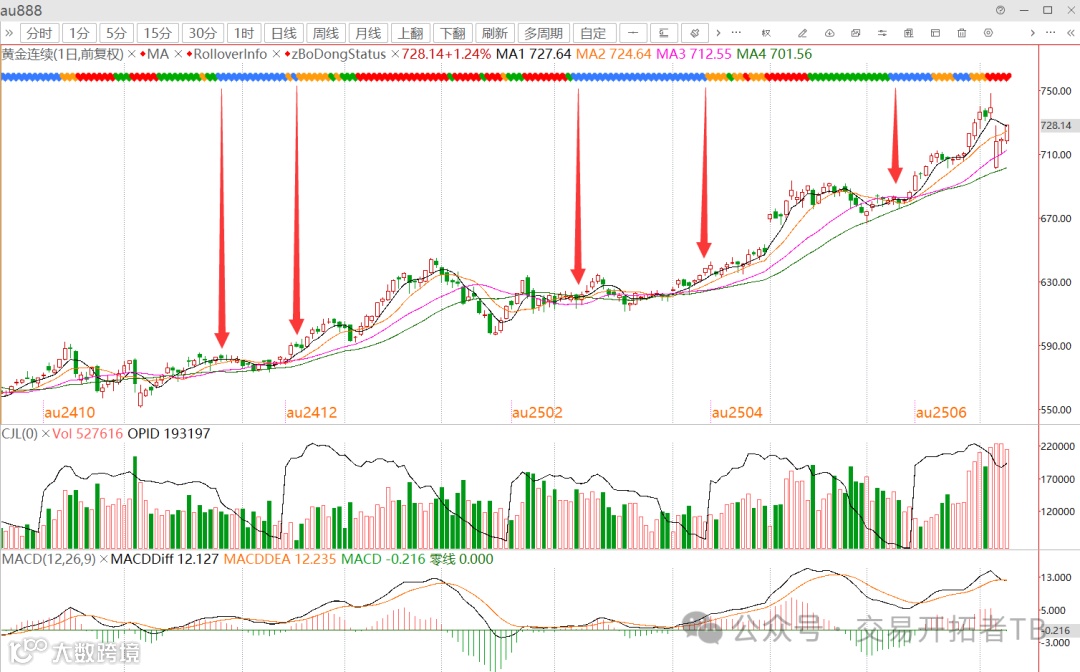 波动状态分4种,红黄绿蓝,红为高波,蓝为低波,其他2色在中间, 笔者带着大家回顾下过去这段有行情的品种日线走势