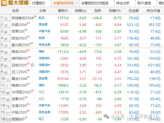 新年第一天,市场冰火两重天。白银大涨5.45%,燃油大涨4.27%,菜籽粕大涨4%,豆粕大涨3.9%,黄金大涨3.57%,后面生猪,沪铅,沪锡,沥青,液化气,棕榈油纷纷跟涨。