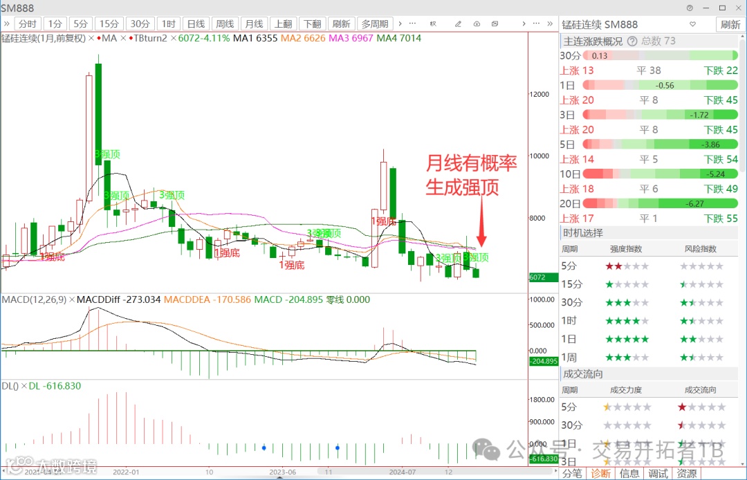 锰硅的月线,走的很强势, 像是要形成强顶的样子, 当日, 3月还有些交易日, 一切未定。