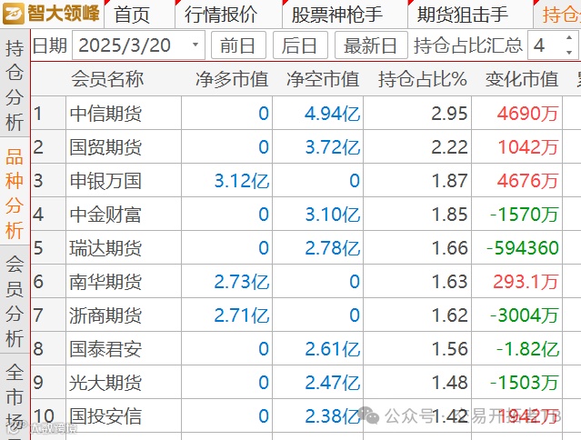 可以发现, 净持仓前十的会员单位,已经有7家处于净空单了,而且仔细观察了下净空的会员, 有几家操作的非常厉害