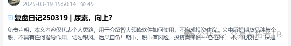免责声明:本文内容仅代表个人思路,用于介绍智大领峰软件如何使用,不构成投资建议,文中所提期货品种与个股,不具有任何指导作用,切勿跟风,后果自负!期市、股市有风险,投资需谨慎。