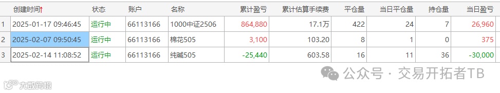 这里我用棉花做了交易测试,我是2月7日开始的网格,到今天才平仓8次。这个网格单的格子设置的非常大,价差50块才开平一次。开平一次毛利是250块,手续费12.9,很多朋友实盘交易棉花手续费开平一手都在10块以内。这个品种如果做高频,那么设置5块钱的价差就能赚钱。
