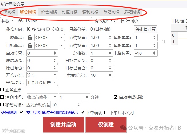 2、当格子向上突破或者向下跌穿格子时,该怎么办?我遇到过很多种情况,向上突破格子,那就开不到仓了,那么我就手动把格子移上去,这里也是可以设定预警的,用Tb移仓网格,就可以实现根据价差自动移格子。