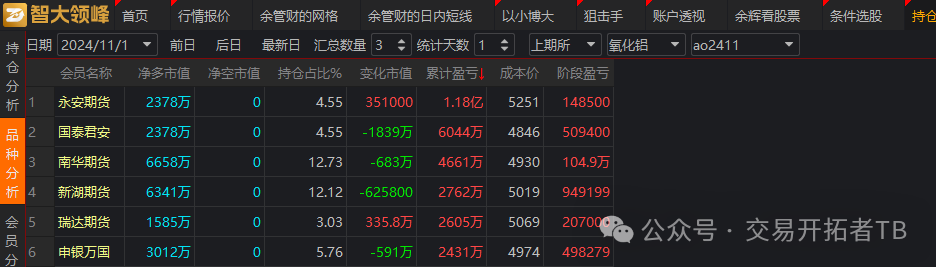 上一次写氧化铝时已经提示了这个品种正在逼空,当时主力还是11月的合约,现在主力转到2501合约了,多头主力继续在逼空。多头就是赌你们手里没有现货,所以肆无忌惮的逼空。已经赚得盆满钵满了。