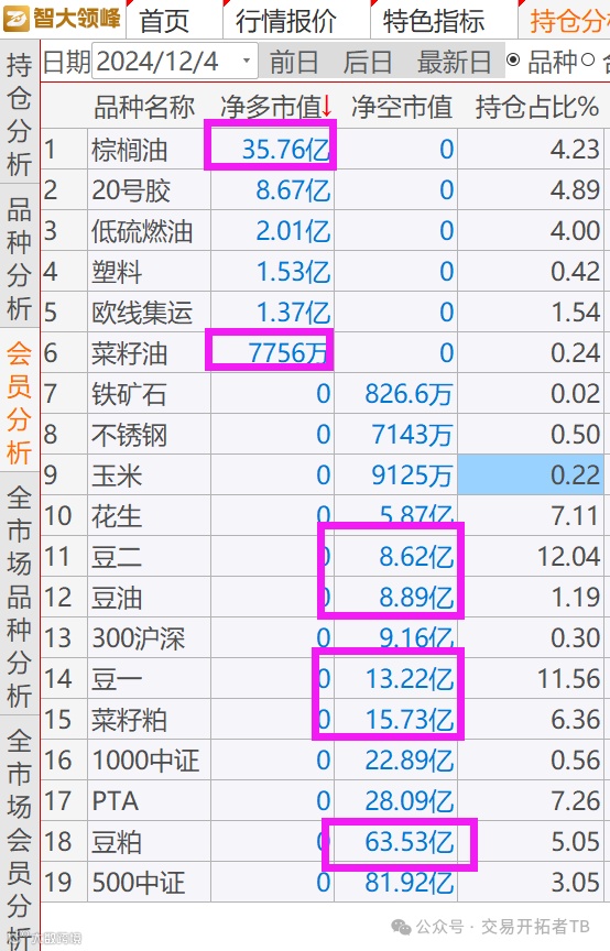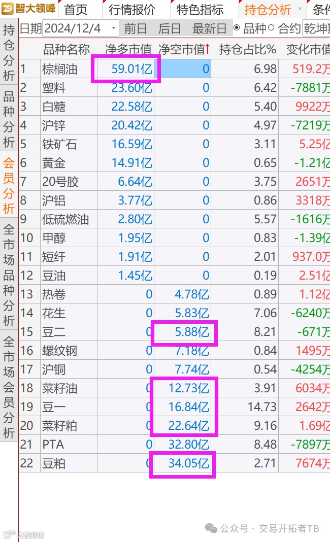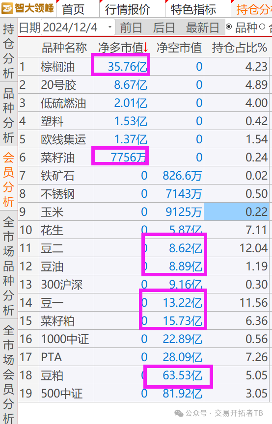 仔细看豆粕的会员持仓, 你会发现,在做买棕榈空豆粕的主要是乾坤和摩根大通两个席位