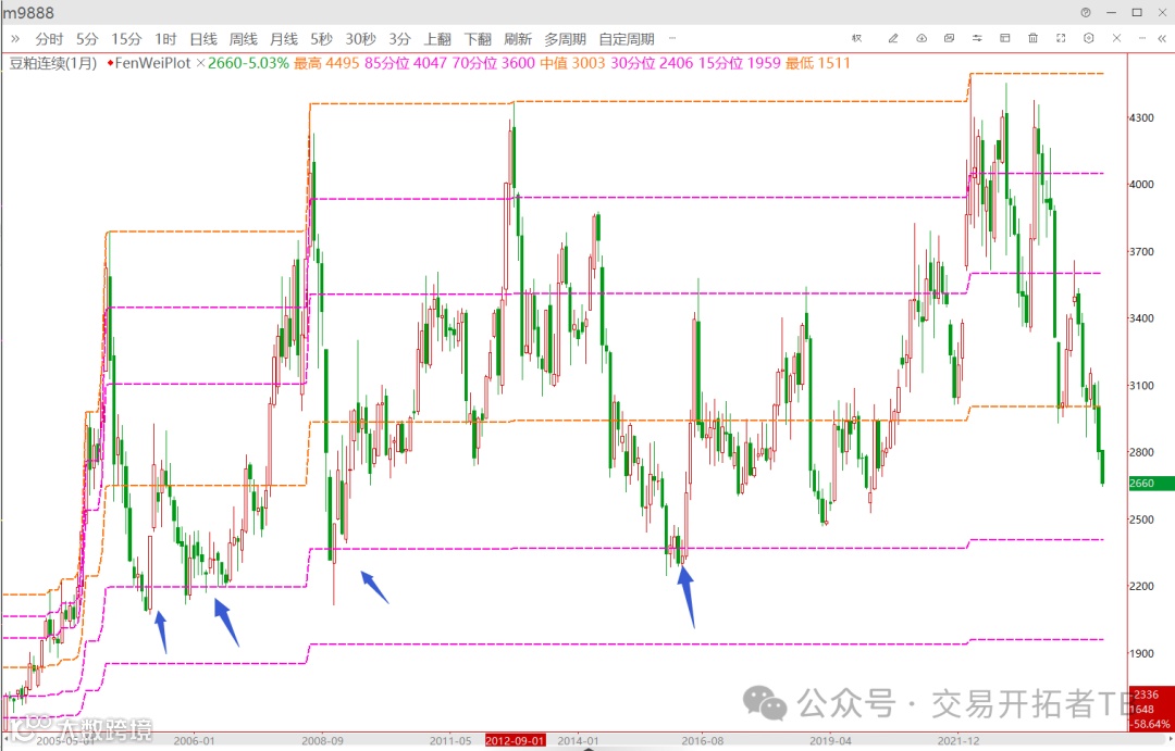 历史上看, 豆粕回踩价格波动区间30%位置的次数屈指可数,当前豆粕的价格已经奔着历史价格区间30%分位去了。